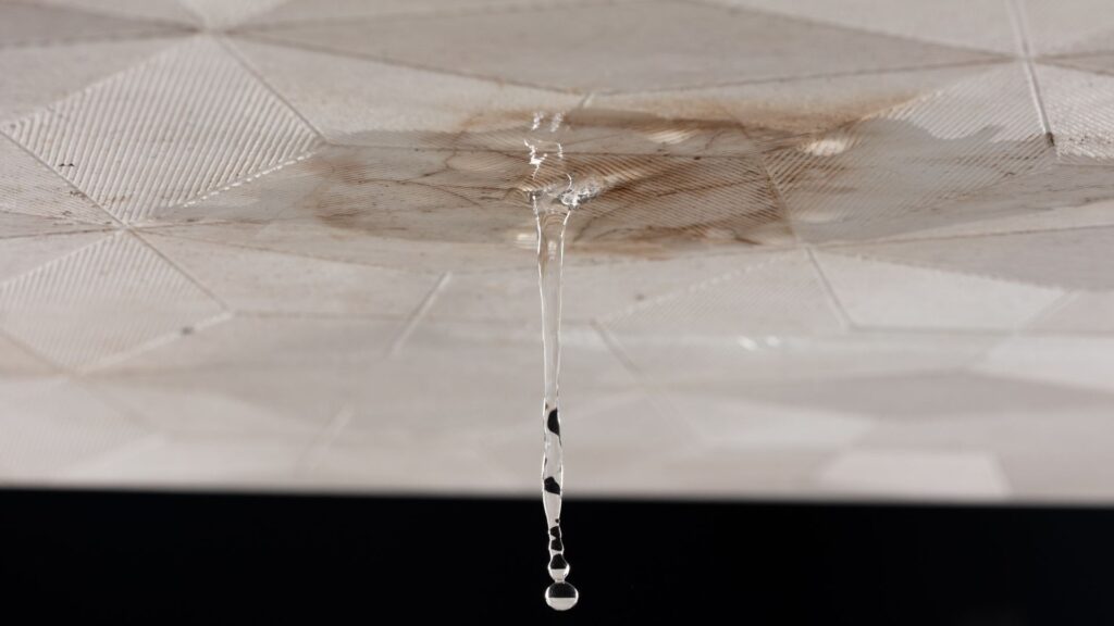 Tijdens regenbuien kun je soms het geluid van druppelend water horen, bijvoorbeeld op zolder. Dat helpt om de richting van het lek te bepalen.